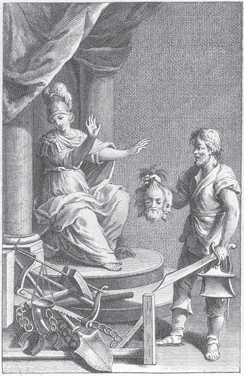 In the sixth edition of Beccaria’s book, we find an alle-gorical copperplate engraved by Giovanni Lapi according to the ideas that Beccaria himself gave to the artist. On the left, we see Justitia on her throne, and on the right, the exe-cutioner who just has decapitated two delinquents. In his right hand, he holds his probably still bloodstained sword, and in his left, the two detached heads. He offers Justitia the heads, but she turns away in horror. Instead, her view is directed to the bottom left. There lie the scales of justice, which are extremely harmed by capital punishment. Traditionally, Justitia keeps the scales in one hand and the sword in the other. But Beccaria’s Justitia rejects the sword and directs her view to the other objects lying at her feet – objects referring to the alternatives to capital punishment: a yoke, chains, a shovel, and hammer stand for the penal servitude which Beccaria thinks should replace capital punishment.
